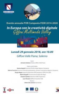 Si parte il 29 gennaio, alle ore 10:00, con l’evento annuale del POR Campania FESR 2014-2020 tra la Commissione Europea e la Regione Campania: “In Europa con la creatività digitale: Giffoni Multimedia Valley”.