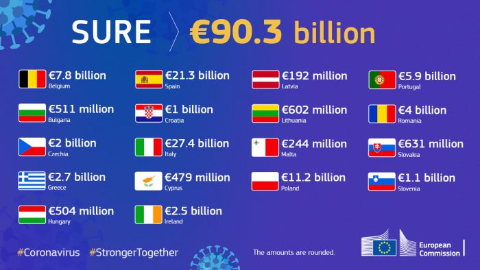 Gli Stati membri possono ancora presentare richieste di sostegno finanziario nell’ambito di SURE, la cui dotazione complessiva arriva fino a 100 miliardi di €.