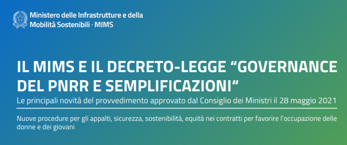 Nuove misure sugli appalti e i subappalti, procedure più snelle per la realizzazione delle opere, sicurezza sul lavoro, occupazione di donne e giovani. Queste le principali misure, che riguardano il Ministero delle Infrastrutture e della Mobilità Sostenibili, contenute nel decreto-legge su “Governance del Pnrr e Semplificazioni” approvato dal Consiglio dei Ministri. Interventi che modificheranno e riformeranno i processi per consentire all’Italia di ripartire verso uno sviluppo sostenibile e inclusivo, che guardi al benessere delle persone e alla competitività delle imprese senza danneggiare l’ambiente.