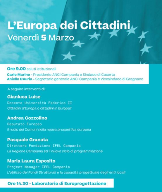 I due macro temi delle giornate formative che si terranno in video-conferenza della due giorni saranno “L’Europa dei cittadini” e “Comunicazione politica e rivoluzione digitale”. Durante il primo appuntamento sono previsti gli interventi di Gianluca Luise, docente di Storia delle istituzioni europee all’Università «Federico II», Andrea Cozzolino, Parlamentare Europeo, Pasquale Granata, direttore della Fondazione IFEL Campania e Maria Laura Esposito, project manager IFEL Campania.